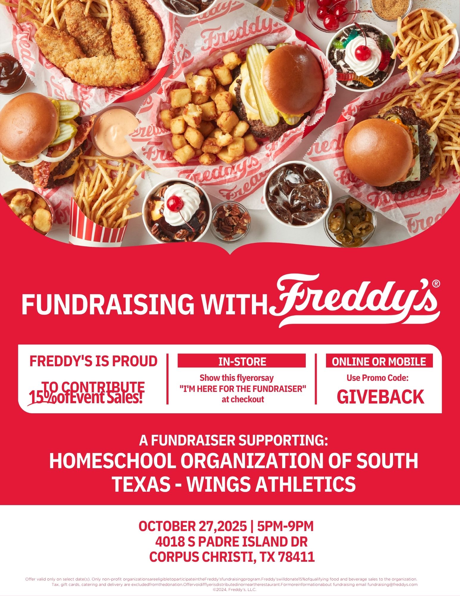 Take the night off from cooking today and come out and support the basketball team as we kick off our season at Freddy's. Bring this flyer or tell them you are here for the event for our WINGS Basketball program will get the credit. Hope to see you there!
